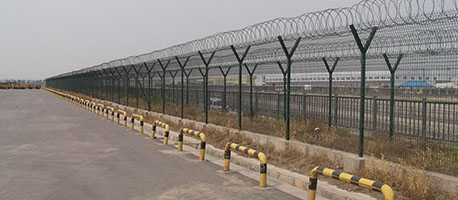 Airport Fence is also known as “Y-Shape security fence”. It is strengthened by the v-shaped support arm and welded mesh, security fittings and hot-dip galvanized concertina razor wire to form a high level of strength and security. Airport Fence is widely used in airports, military bases and other high security sites.